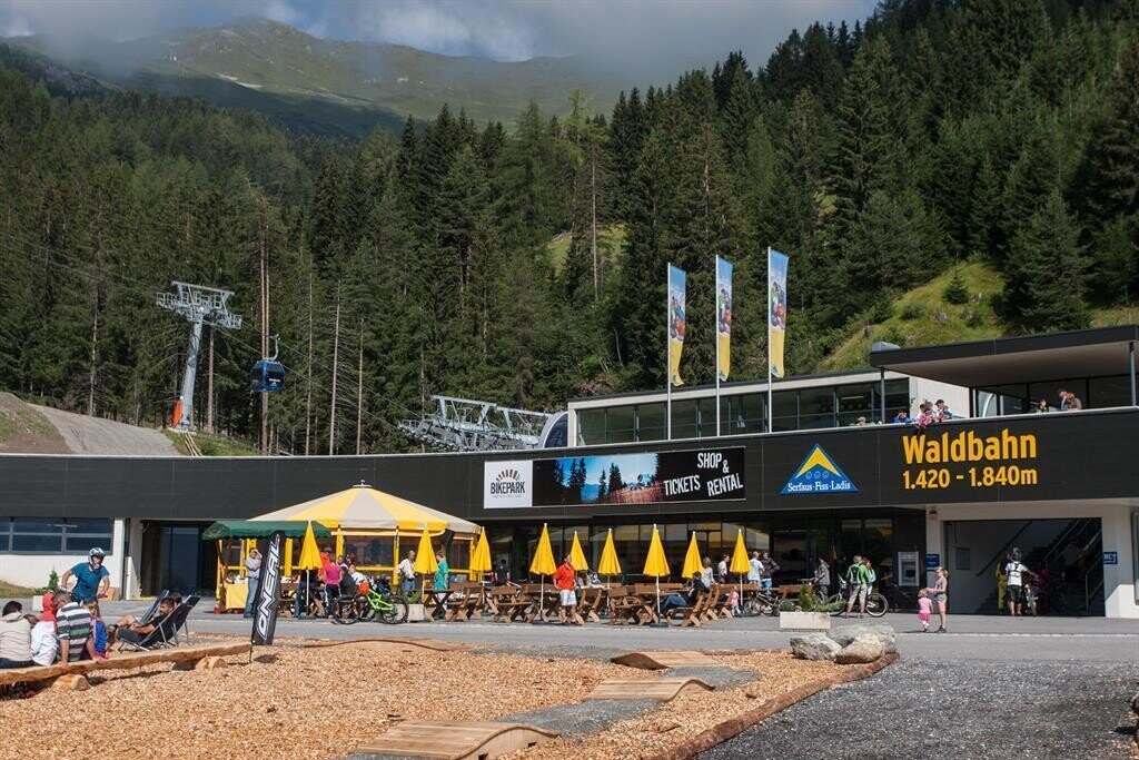 Die Schirmbar befindet sich direkt an der Talstation der Waldbahn.