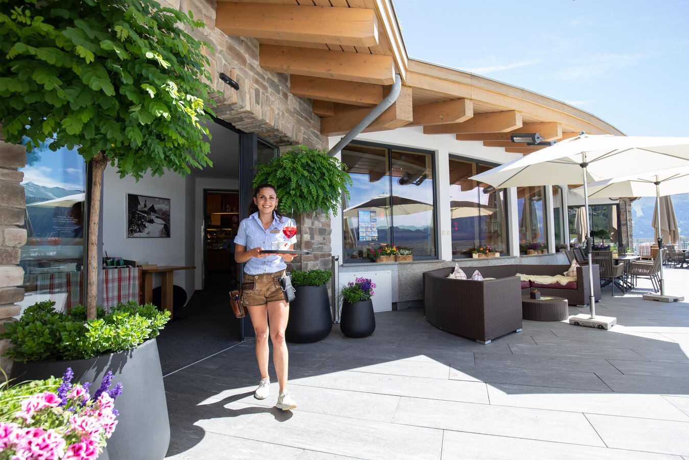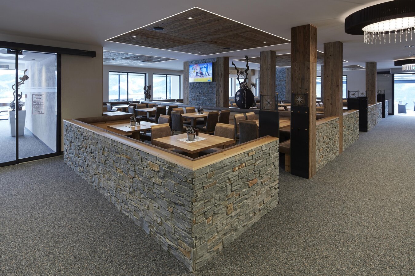 Rustikal und modern zugleich, mit viel Holz, Naturstein und einer großzügigen Sonnenterrasse lädt unser Familienrestaurant zum Entspannen ein.