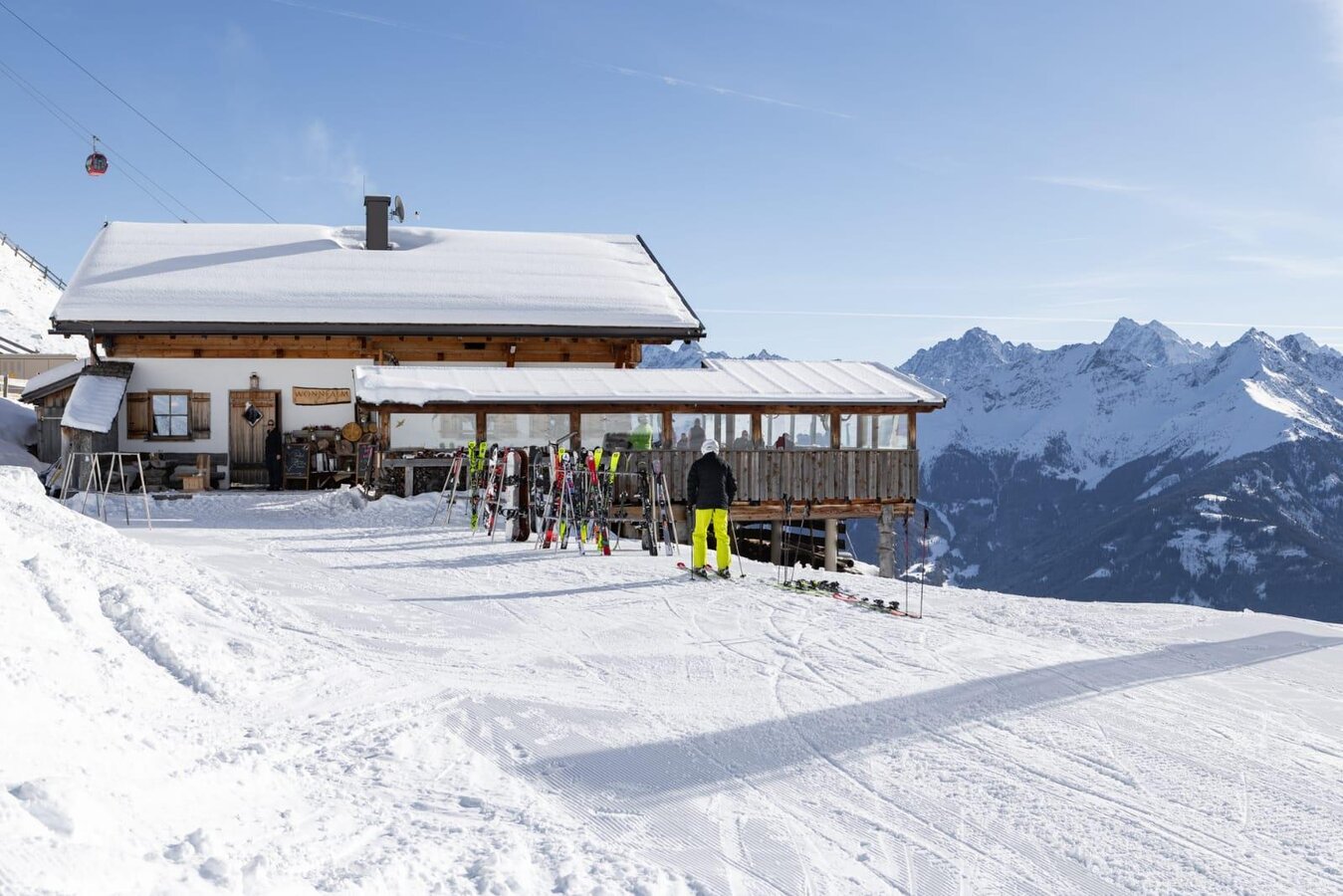 Die Wonnealm liegt direkt an der Piste und verbindet alpinen Charme mit echter Tiroler Gastlichkeit.