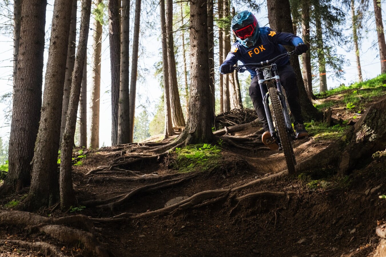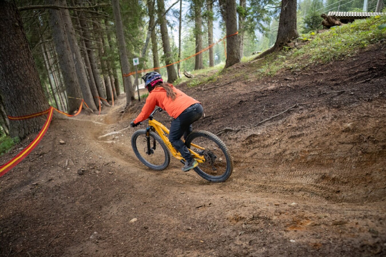 You really can get the greatest adrenaline rush at the Serfaus-Fiss-Ladis Bikepark on the Downhill course. Over the distance of 1,480 metres, more than 400 metres of difference in altitude are covered on the descent – a steep deal. At the seven-way intersection, you start and blast back to the valley station at top speed. Additionally, there are a considerable number of tricky elements that demand a lot from the riders on each run. The great variety on this short track comes from the variation of natural sections, root carpets and forest terrain. Rock gardens also ensure that the Downhill course stands out from the other tracks and justify its classification as a “difficult” line (black). You occasionally get to take off on the Downhill track due to built-in jumps, be it over north shore elements or off-road edges. Experienced freeriders and downhillers have the chance to push themselves and go full speed here.