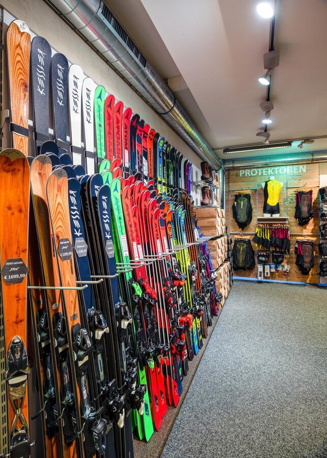 You can expect a large selection of ski models to hire and buy, customised boot fitting, well-known outerwear and sports fashion brands, our own ski depot and comprehensive ski and customer service including ski pass sales. In winter, the sports centre stocks exactly the high-quality equipment and all-round carefree service that skiers want. And in summer? Here, everything revolves around bikes and mountains.