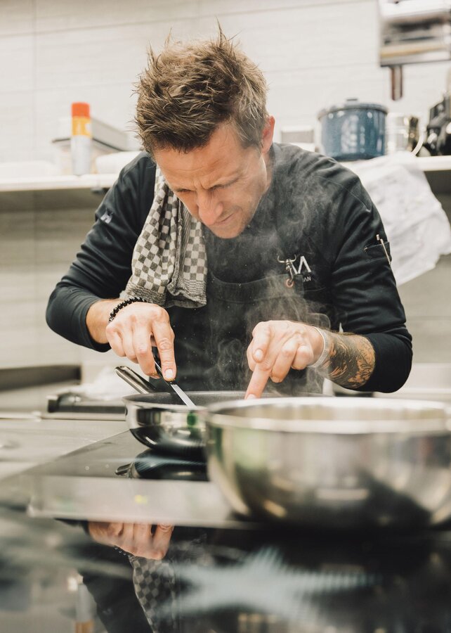 Constantly on the lookout for new flavour experiences and with a keen sense for new culinary highlights, Christian Marent is at home all over the world and yet prefers to be at home. He himself describes his cuisine as individual, cosmopolitan and at the same time close to home, with a hint of Spanish and Asian flavours. A feast for the senses!