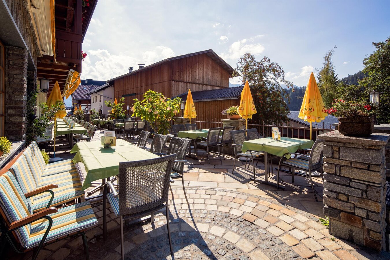 Our daily fresh pastries, the delicious ice cream sundaes and the large sun terrace with a small children's playground, where you can enjoy a large selection of summer drinks and fine wines, are particularly popular.