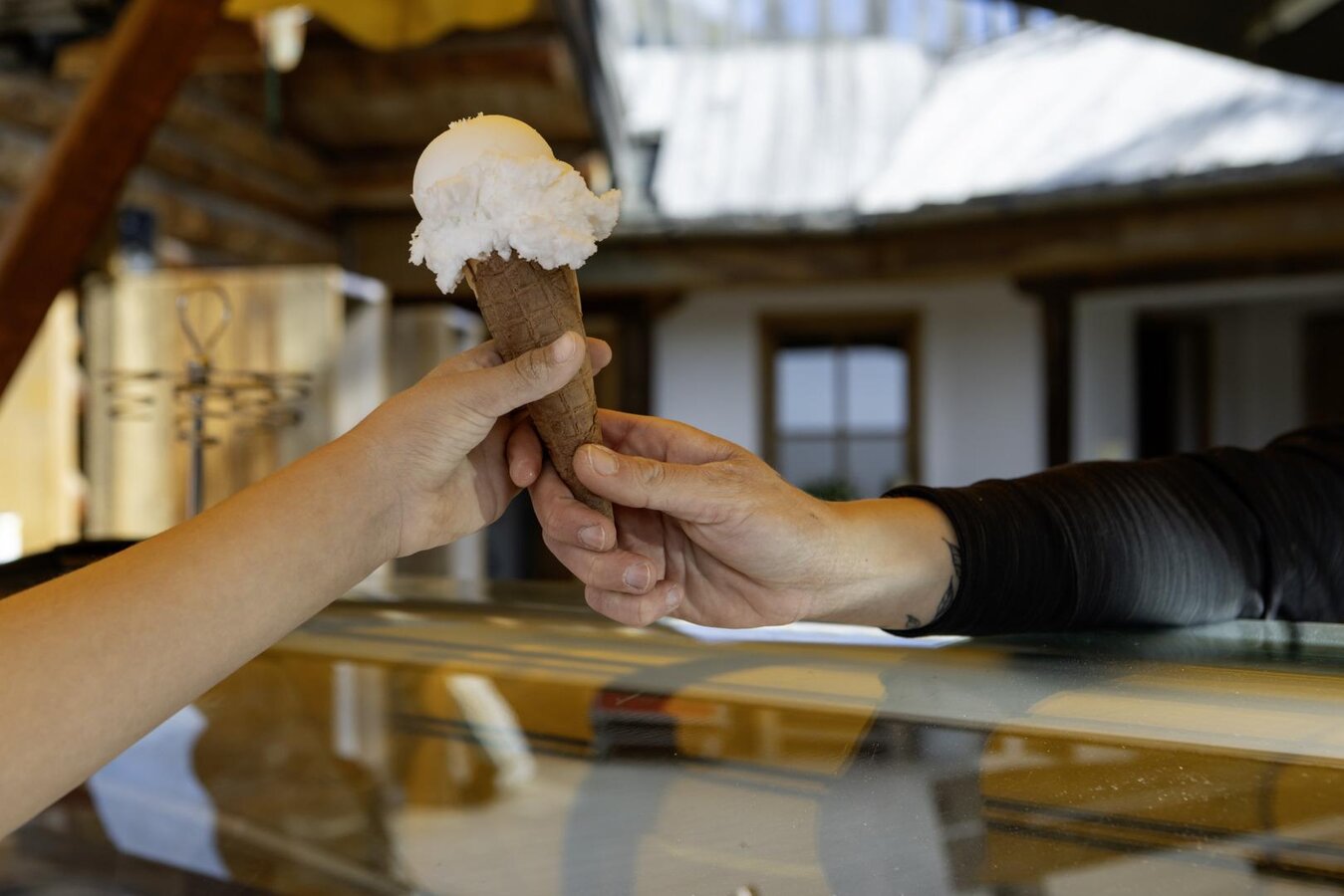 Soak up the sun and relax on the terrace while watching your little ones play. Meanwhile, treat yourself to a delicious cup of coffee, a cool drink or a refreshing scoop of ice cream from our own production. For those feeling peckish, we offer hot and cold snacks at the Murmlikiosk. Small souvenirs are also available to purchase, reminding you of the best moments of the year.