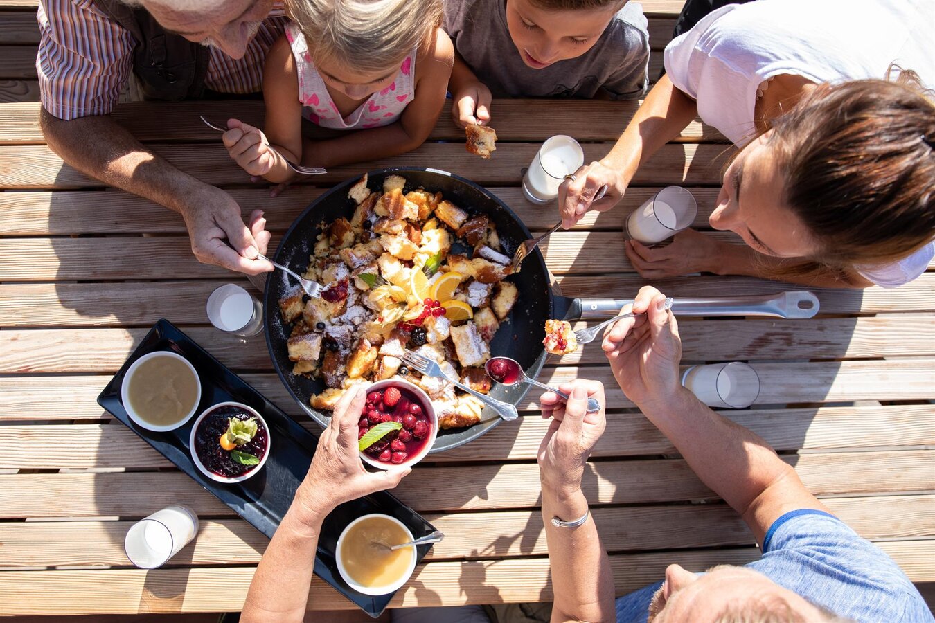 Try our homemade bread baked in the wood-fired oven or the ice cream from our own production!