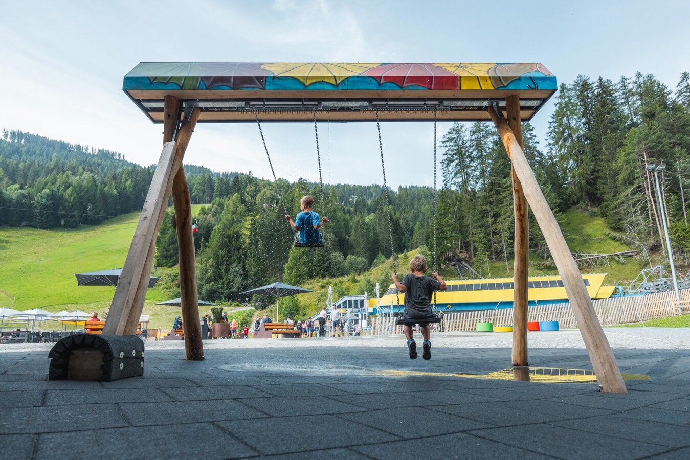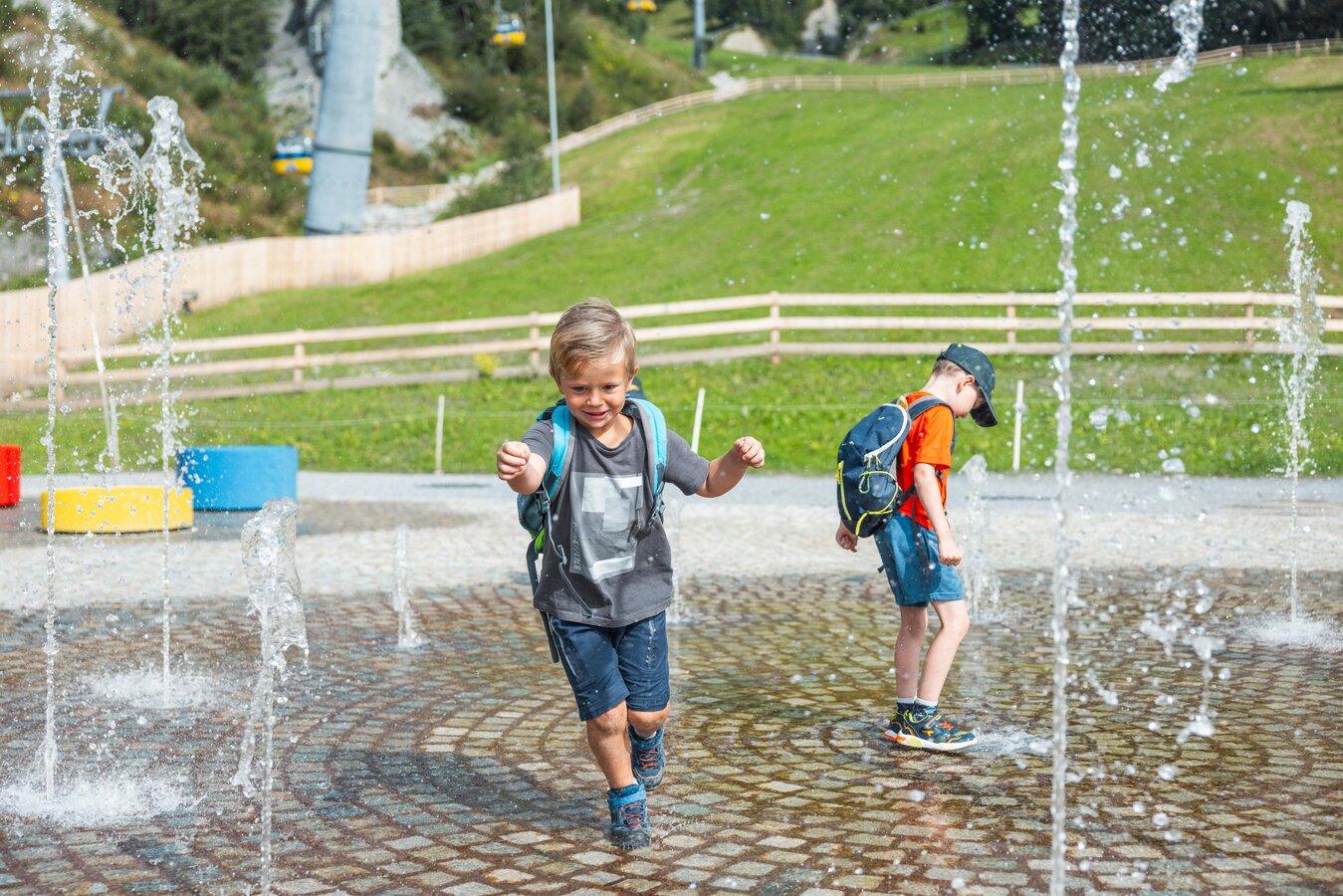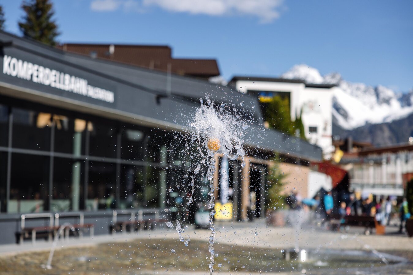 At the end of the Holzkugelweg - directly at the bottom station of the Komperdellbahn cable car - the water & sand play world awaits you. Interactive water games and a large sand play area delight small and large children alike. Cozy seating around the gaming world invites you to end the day with a refreshment.