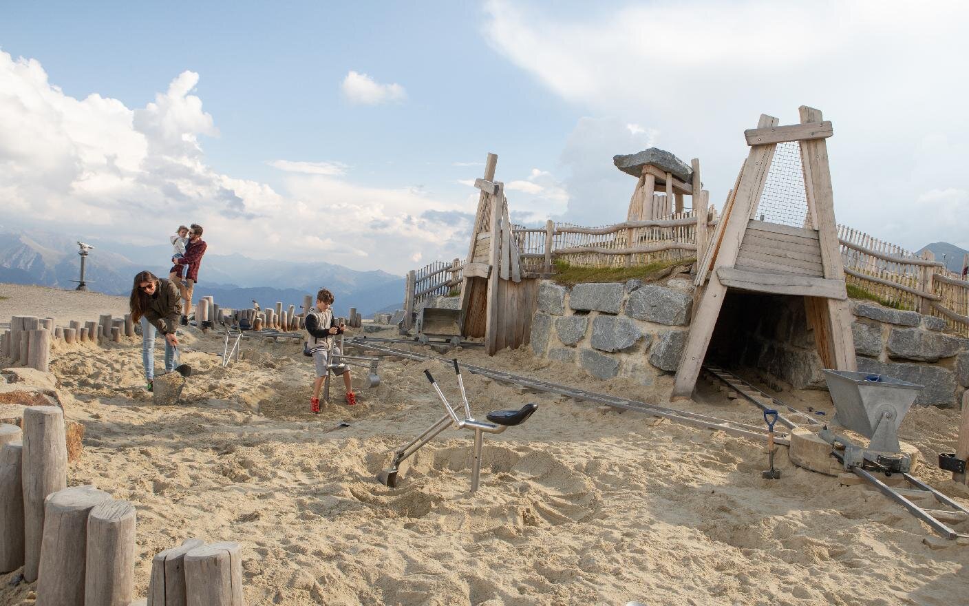 In Serfaus-Fiss-Ladis, a special attraction awaits the children: In addition to skill exercises on balancing devices, numerous climbing stations, slides, and swings, the diligent adventurers can search for the golden treasure. In the cave experience tunnel of the mine lies a labyrinth with sparkling stones waiting to be discovered.