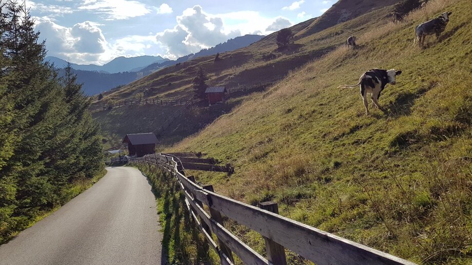 The tour leads via the Falterjöchl to Obladis and Neuegg. From there, the trail is mainly gently uphill heading to the Urgtal valley and our destination: the Schöngampalm. Look out for other bikers and vehicles as the forestry road can be very busy at times.