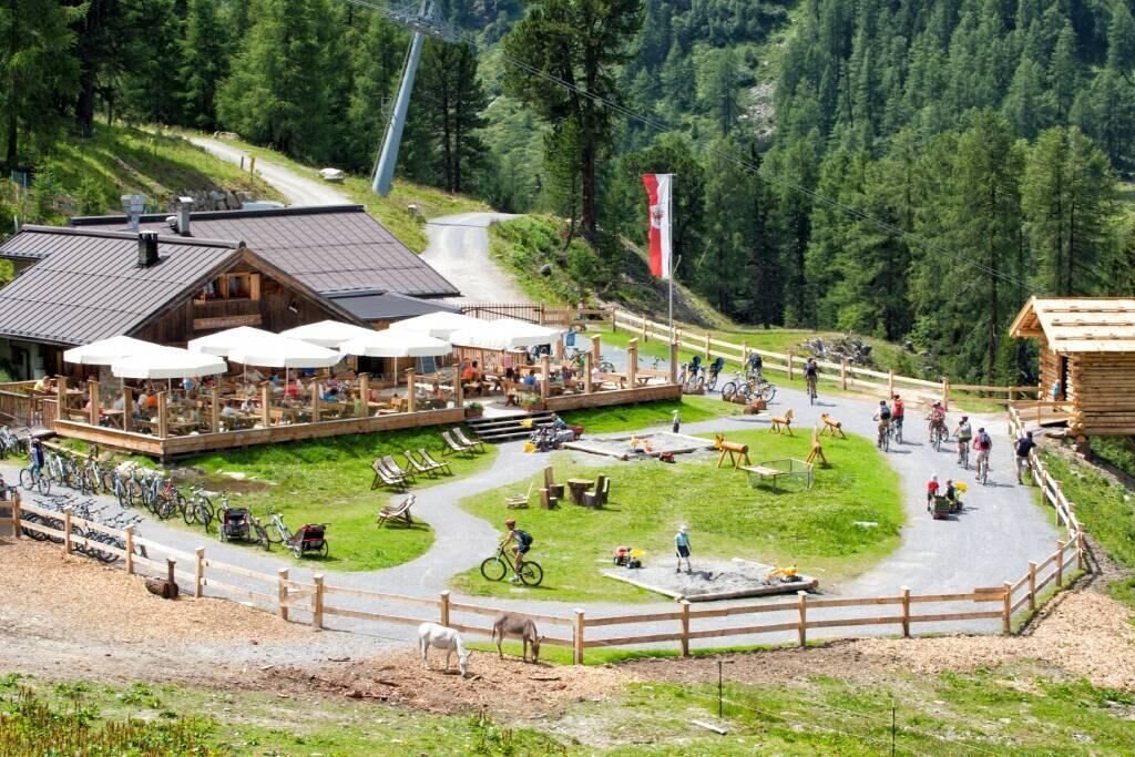 The Schöngampalm presents itself as a small, rustic and cozy Alpine pasture chalet close to the Almbahn valley station. Here you will not only be treated to excellent Tyrolean specialties but you can also make yourself comfortable on our large terrace.