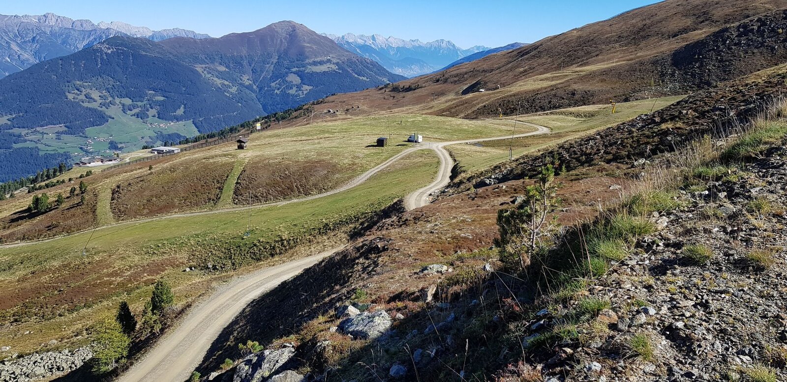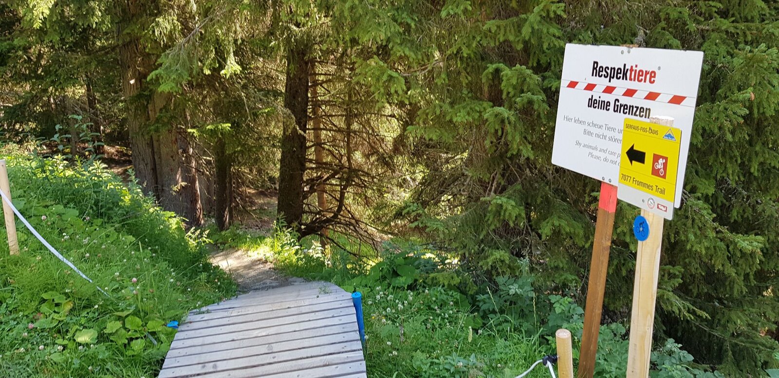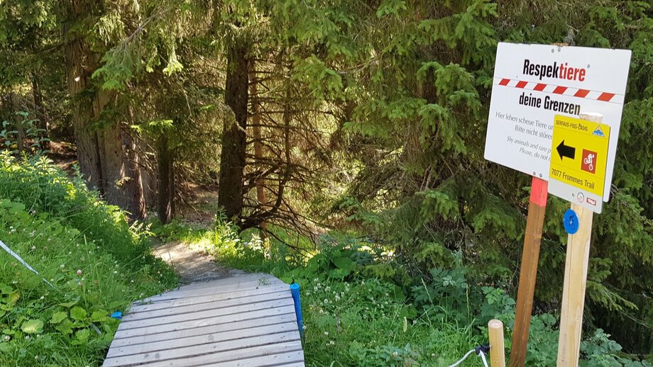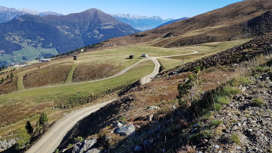 Take the Emmerich Pale trail from the Schöngampalm up to the Schönjoch ridge (F079). If you manage this climb, you’re rewarded with a stunning panoramic view. The trail follows the Frommestrail (S1). Once you manage the Frommestrail (F024), turn right onto the bike trail to Fiss, through the village back to the bike park.