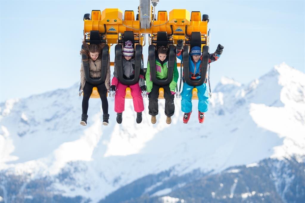 There is room for up to eight people on its seats – specially developed for adrenaline junkies! Once you get on, the excitement begins. Daredevils can choose from three different levels: from soft swinging motions to a full 360. The Skyswing is open in winter too, by the way …